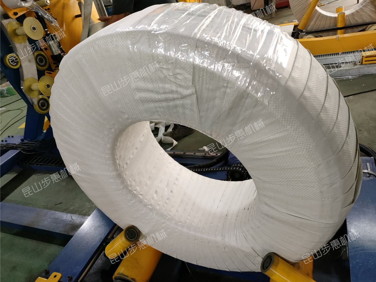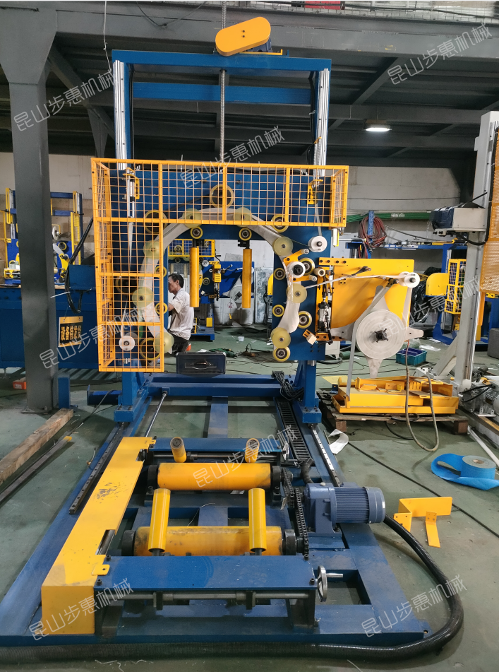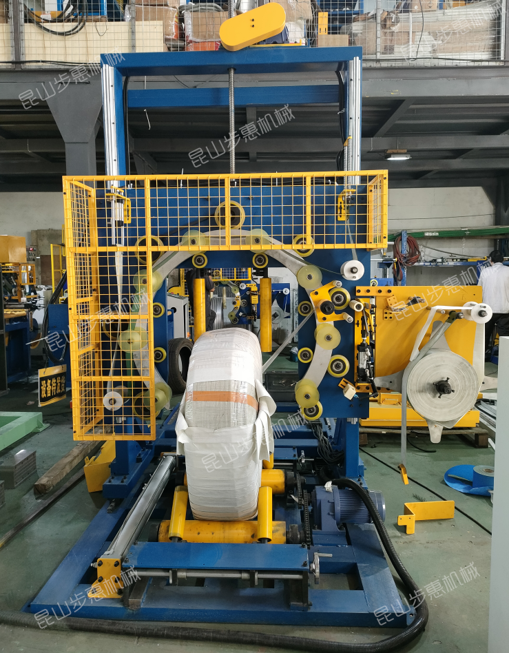 立式环体缠绕包装机(主机移动)专门用于钢带、铜带、铝带、钢丝、盘元等的缠绕包装,使被包装物达到相对密封,从而起到良好的保护和装饰作用。
